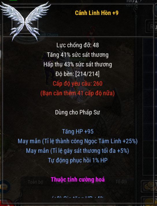 - 1 Cánh cấp 2 bất kỳ +9 trở lên, opt (Life) tối thiểu +4